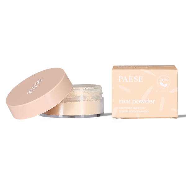 Rice powder with colour – the bestselling Paese formula in a new version. Our iconic rice powder now comes with a hint of color. Created by combining the ricepowder base with natural mica and mineral pigments, this light beige powder not only extends makeup durability, but also evens out skin tone. Delicate and universal, it leaves a matte finish and a beautifully smooth complexion. With 86% ingredients of natural origin, it doesn't clog pores and lets the skin breathe.